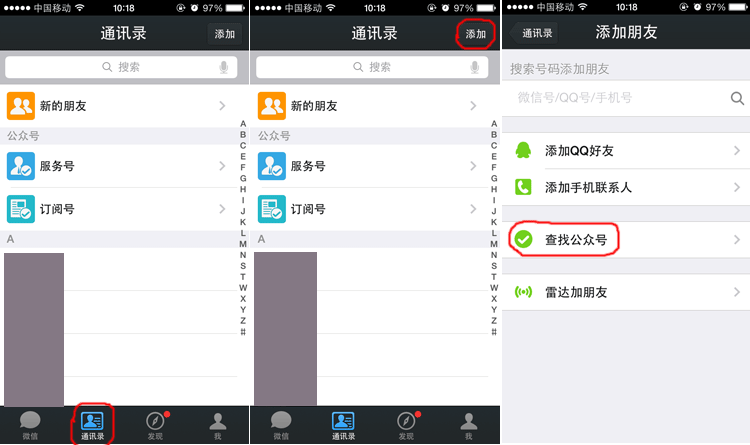 登陸手機微信 -> 點 通訊錄 -> 點 添加 -> 點 查找公眾號 -> 輸入 廣州鋼材批發(fā)網(wǎng) 搜索 -> 點第一個 廣州鋼材批發(fā)網(wǎng) -> 點 關(guān)注